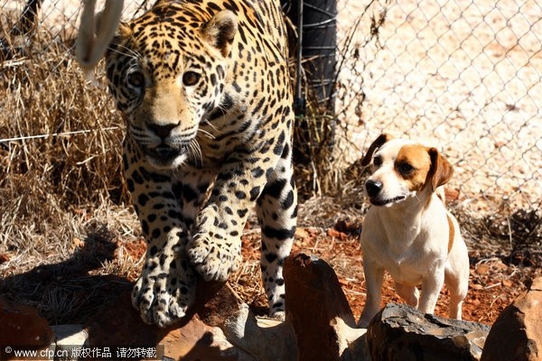 ▲▼狗狗 Bullet 和美洲豹 Jag 整天形影不離。(圖/CFP)
