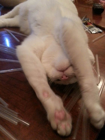 貓貓總有些令人意想不到的特殊癖好,有的愛咬塑膠袋,有的愛鑽紙箱。美國一位貓主人在日前分享,家裡的愛貓有「吸管癮」,總愛趁人不注意時,把吸管偷走。所以不久前乾脆送給牠一大堆,而貓貓收到這份「大禮」後,開心地在吸管堆中打滾,真的High爆鳥。 貓貓喜歡塑膠袋或相關製品,是因為它有獨特氣味,也可能是在舔咬的過程會發出沙沙窣窣的聲音,讓貓覺得好玩。不過醫師提醒,要當心貓貓不小心吞入,曾有貓把塑膠異物卡在喉嚨,不得不手術取出,嚴重還可能釀成生命危險。